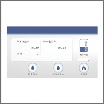 主機(jī)3路水質(zhì)和2路流量監(jiān)控 RO、DI、UP超純水3路水質(zhì)實時監(jiān)控,無需取水即可查看水質(zhì). 2路高精度定量(10-999999ml)、定質(zhì)(0~18.25MΩ.cm)取水功能. | ![]() |