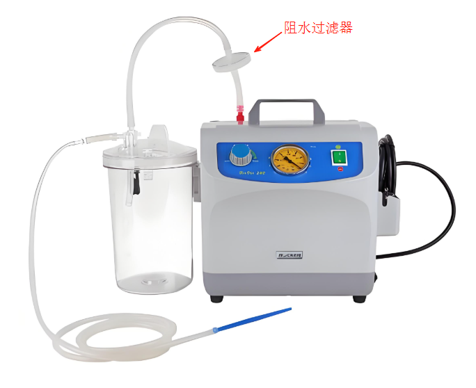 為防止液體倒吸進(jìn)入真空泵,建議在廢液瓶和真空泵之間鏈接阻水過濾器,以防止抽吸過程中液體隨著氣流進(jìn)入真空泵,長時(shí)間的累積,導(dǎo)致真空泵內(nèi)部軸承生銹卡住。連接方法如圖4所示。另外注意Biovac240主機(jī)背后有散熱風(fēng)扇,在使用過程中應(yīng)禁止液體灑入,導(dǎo)致機(jī)器短路故障。建議將真空泵放置在安全柜或?qū)嶒?yàn)臺(tái)下方,遠(yuǎn)離一切可能接觸到液體的環(huán)境。如不慎將液體灑入風(fēng)扇,應(yīng)立即關(guān)機(jī),然后聯(lián)系客服人員。